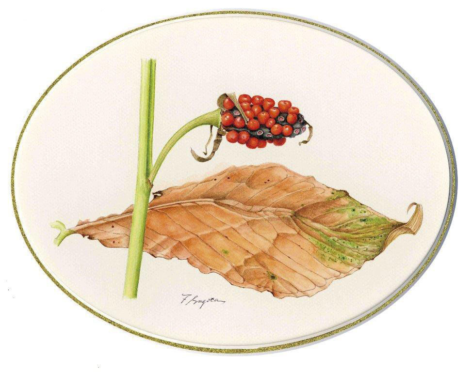 :安塚区にある菱ヶ岳の紅葉は美しく毎年母を連れて行く。6年前のこと、途中で母が用をしたいと言い、車の影で足した。道の反対側で待つあいだ、迫力あるこの実をみつけた。帰って名を調べたらこれまた迫力なので唸ってしまった。この頃から苦手だった母が楽になってきた。(平成19年9月会報表紙より)