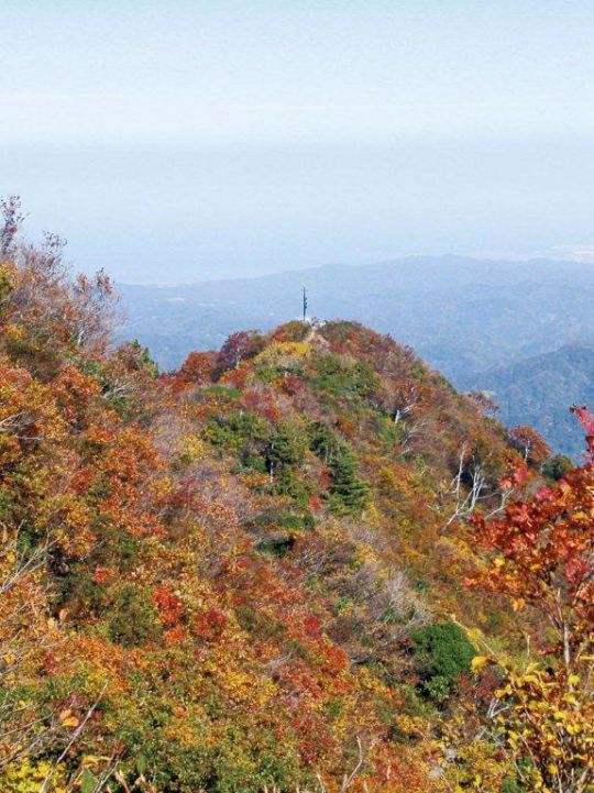 コメント:頸城平野の関川から東側の地域から春日山丘陵の上に連れなった大きな峰が二つ見えます。能生谷、柵口の西側に聳える権現岳と鉾ヶ岳です。急峻な山で、昭和61年1月26日の夜中、権現岳の中腹800mから900m付近で発生した表層雪崩が柵口部落を襲い、多くの家屋を破壊して20人以上の死傷者を出しました。登山コースは、柵口から権現岳に登り、鉾ヶ岳に縦走して島原鉱泉に下るか、その逆のコースが一般的です。権現岳への登りはロープに掴まって登る急な岩場が何ヶ所かあります。どちらから登っても急な坂の登り下りがあり、6~7時間はかかります。登る時間はホンシャクナゲの咲く新緑のころと10月の紅葉のころが最適です。(平成19年11月会報表紙より)