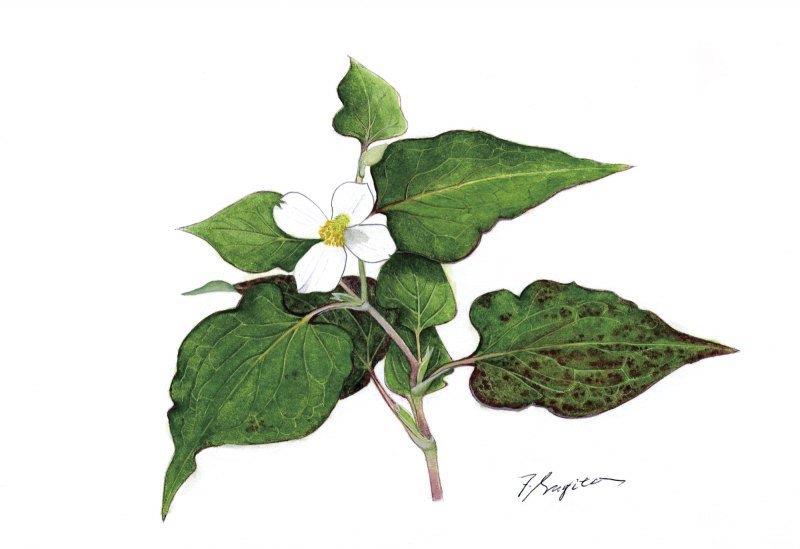 :ドクダミは旺盛で身近な花だが、一面ドクダミの野原というものを見たことがない。強い匂いのせいか、薬草としてか、人に刈られているのかもしれない。それにしても真っ白な花は、この時期ふとした清涼剤であろう。(平成25年7月会報表紙より)