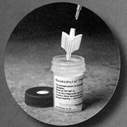 子宮から採取した細胞をすべて保存容器に入れ、特殊な検体処理を行うことにより、従来の方法に比べ的確にがん細胞をみつける事ができます。