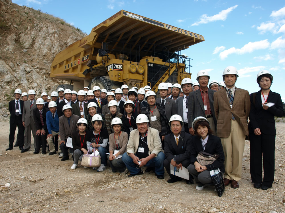 午後からは電気化学工業㈱青海工場へ出かけ、工場の概要や社員に対する健康対策について講義をしていただきました。健康対策については、メンタルヘルスや熱中症予防の対策に取り組まれている話をお聞きしました。その後、石灰石の採掘現場や、国内最大の超大型ダンプトラックを見学し、規模の大きさを体感しました。