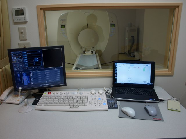 平成18年に導入した1階健診センターのCT装置(検出器4列)は経年変化による装置の劣化が著しいことや、ドック健診での利便性向上を図ること等から、この度CT撮影を2階健診センターに移動するとともに東芝メディカルシステムズ社製CT装置(Alexion検出器16列)に更新しました。