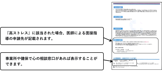 「高ストレス」と判定された方は、事業者に申し出ることで医師(産業医等)による面接を受けることができます。