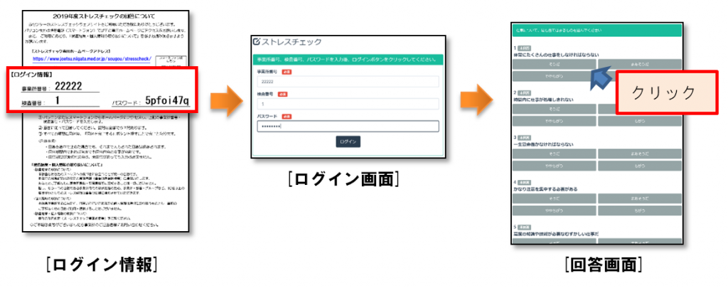当センターで発行したログイン情報を入力し、57問ある質問に回答していきます。