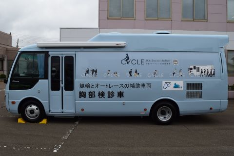 このたび、公益財団法人JKAの2022年度公益事業振興補助事業(競輪補助事業)として製作していた胸部X線デジタル検診車が完成し、5月30日に納車されました。